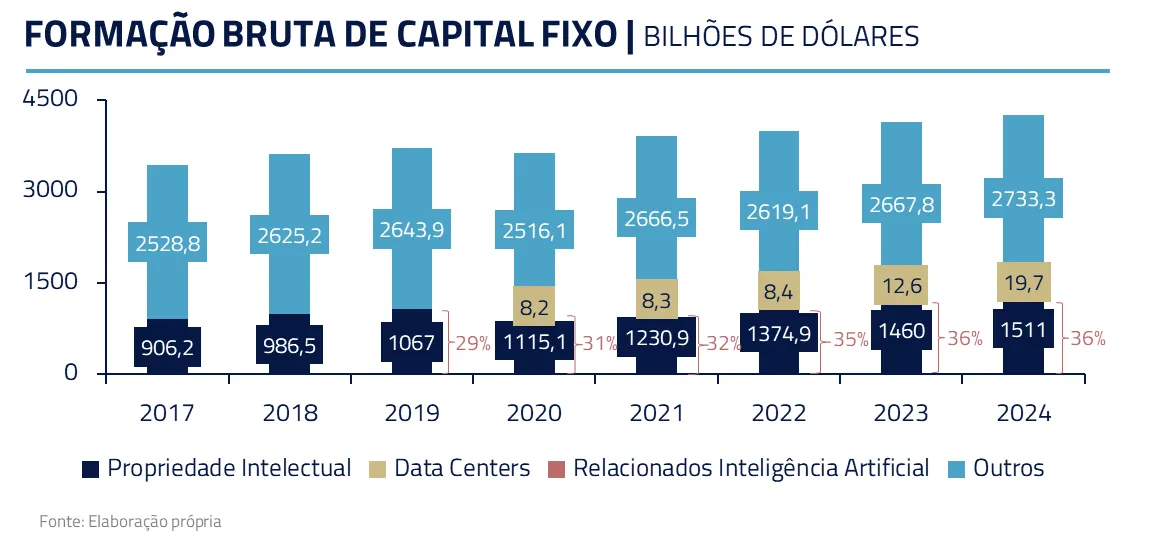 E é justamente aí que a guerra muda de forma. O crescimento americano, neste ciclo, depende diretamente da inteligência artificial, mas esse motor começa a dar sinais de transição. O grande impulso de CAPEX promovido pelas big techs, crucial para o avanço inicial da IA, aproxima-se de um limite natural: os investimentos marginais exigem volumes cada vez maiores de dívida corporativa e a próxima fase da revolução tecnológica exigirá algo diferente — receita, não apenas infraestrutura.