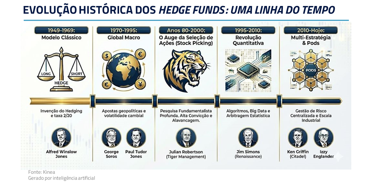 Para melhor entendermos como chegamos até aqui, é importante entendermos a história da evolução dos fundos multimercados globais (hedge funds) e as razões pelas quais essa evolução nos conduziu ao nosso atual processo de investimentos.
