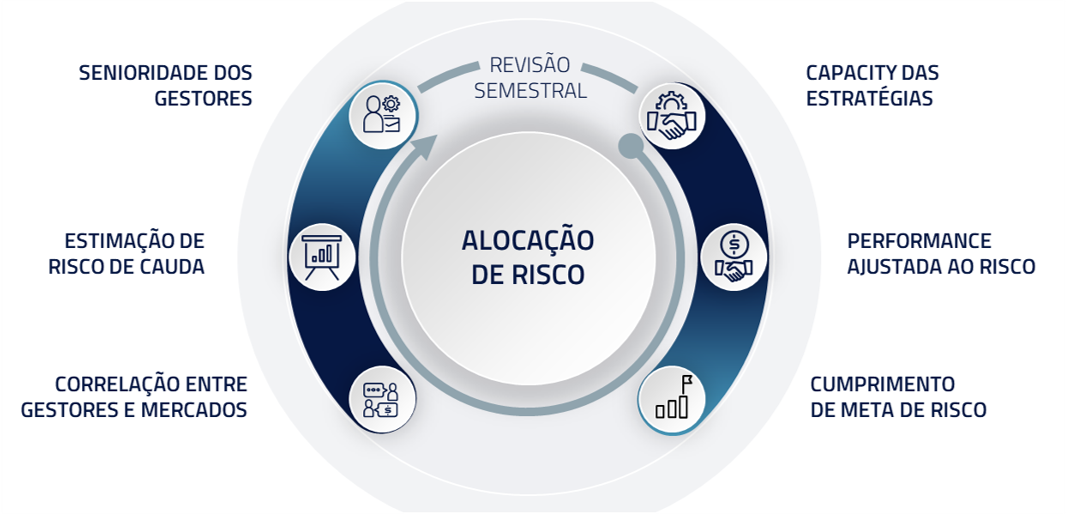 Na Kinea representamos essa estratégia em um time multigestor, com uma equipe de 50 profissionais cobrindo desde macroeconomia até ações individuais e commodities. Além do nosso processo principal, desenvolvemos um conjunto de estratégias ortogonais que nos permitem diversidade e diversificação em nosso processo, mantendo também controles sofisticados de alocação de capital e risco.