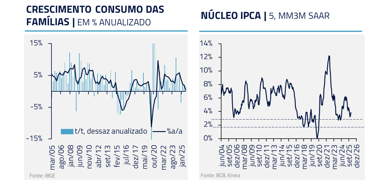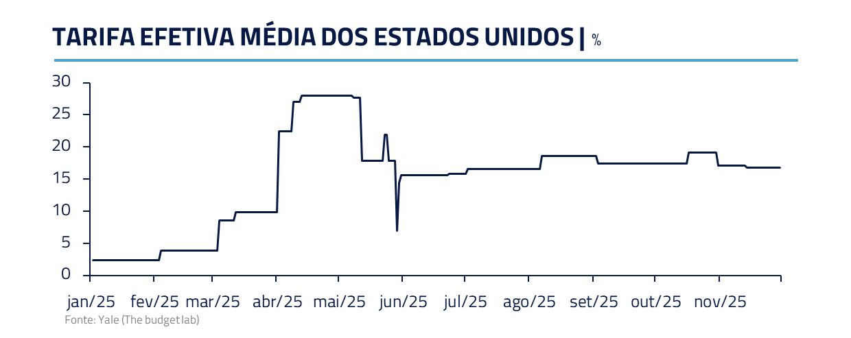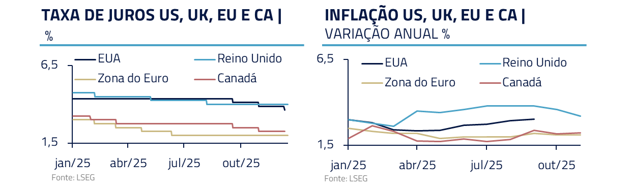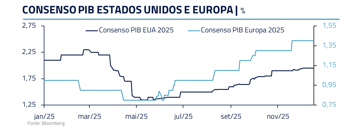 No próximo ano deveremos observar nos Estados Unidos uma combinação de política fiscal expansionista e afrouxamento monetário. A mudança na presidência do Federal Reserve, prevista para maio, combinada com o impulso fiscal da “Big Beautiful Bill” e incentivos visando as eleições da câmara devem reestimular a dinâmica do consumo americano.