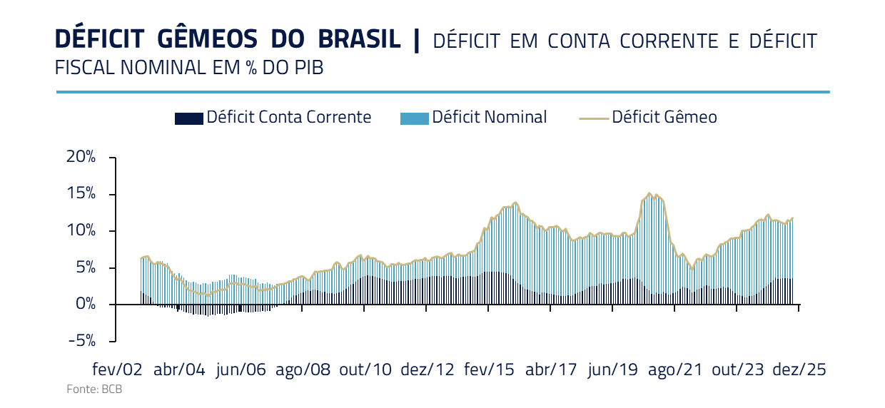 Demoramos mais do que gostaríamos para incorporar plenamente os impactos dessa dinâmica em um país que exibe déficits gêmeos elevados, dependência estrutural de financiamento externo e um passivo relevante com o resto do mundo.