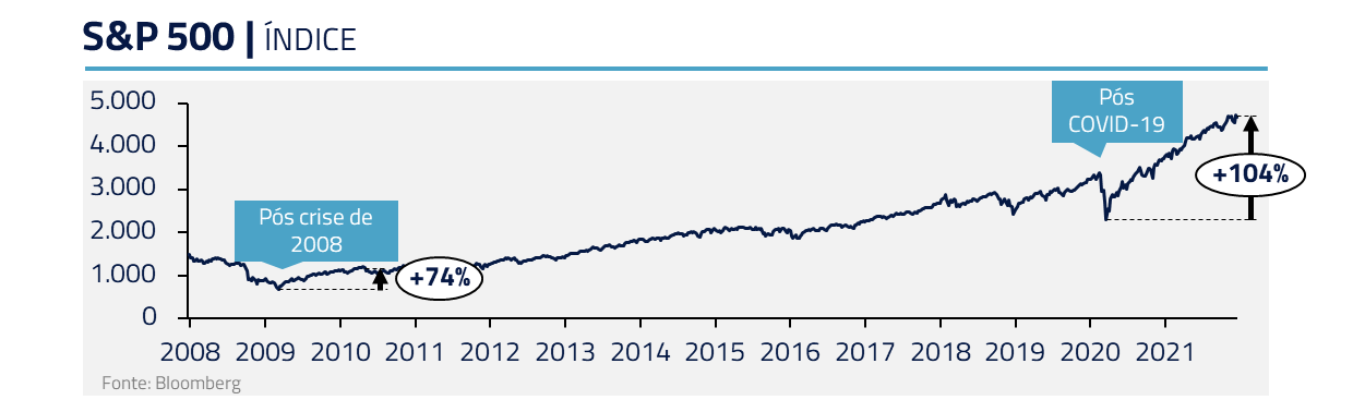 Em poucos momentos da história tivemos esses dois vetores apontando para a mesma direção, a memória mais recente, mas em outra magnitude, é a saída do Covid. Esse ambiente, a se confirmar, deverá impulsionar os ativos de risco norte-americanos.
