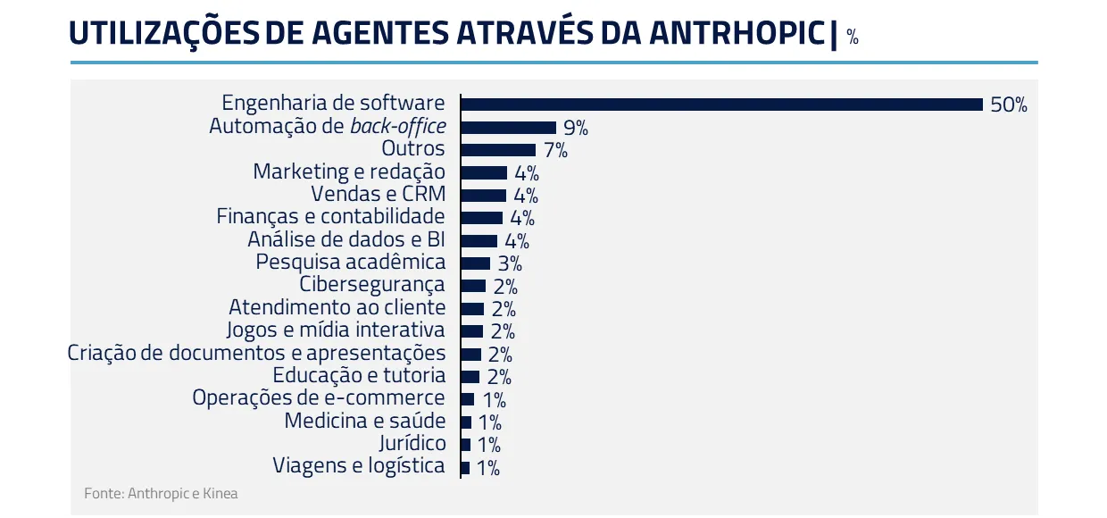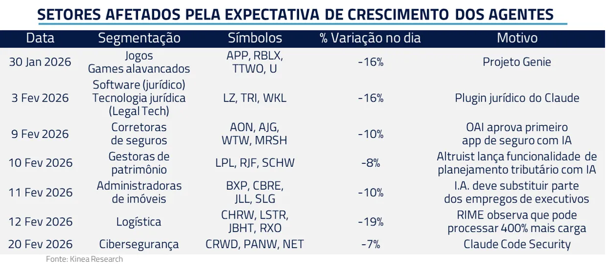 Outros setores também passaram por reavaliação: seguros, viagens online, logística e serviços corporativos. Quando agentes conseguem executar tarefas complexas com custo marginal próximo de zero, estruturas construídas ao longo de décadas tornam-se vulneráveis.