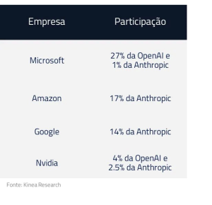 As MAG-7 não são apenas compradoras de infraestrutura; são donas dos ecossistemas, da distribuição, dos dados e da capacidade de monetização em escala global. Se os dragões redefinem o campo de batalha, são essas companhias que os comandam. A assimetria pode estar justamente na subestimação da velocidade com que transformarão investimento em domínio econômico duradouro, além das participações relevantes que possuem em líderes de I.A., como Anthropic e OpenAI.