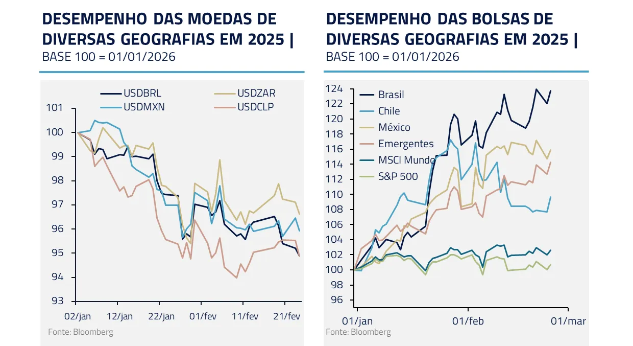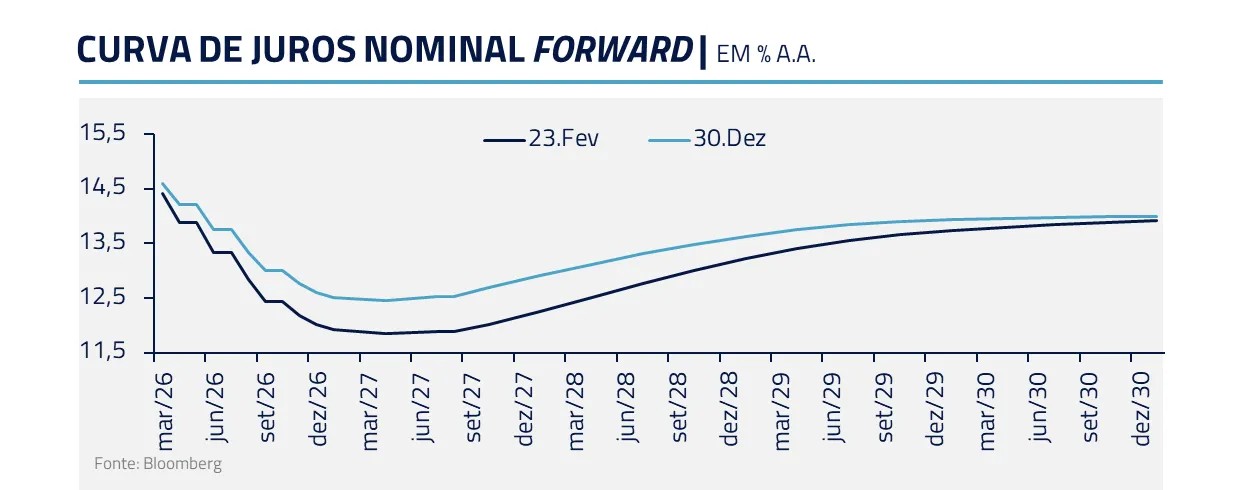 No Brasil, o mercado já precifica aproximadamente 300 pontos-base de cortes de juros, com início esperado para março.