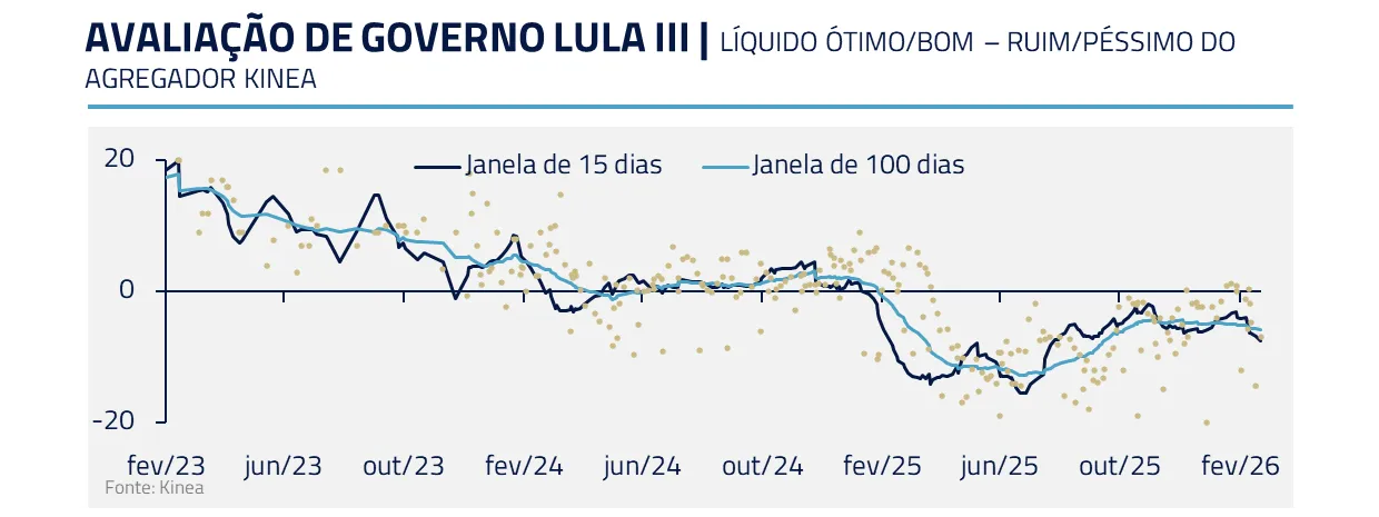 Chama-nos atenção o fato de que a popularidade do presidente ter voltado a cair em fevereiro, mesmo após a entrada em vigor dos cortes de imposto de renda para a faixa até R$ 7,3 mil mensais e o baixo nível da inflação de alimentos.