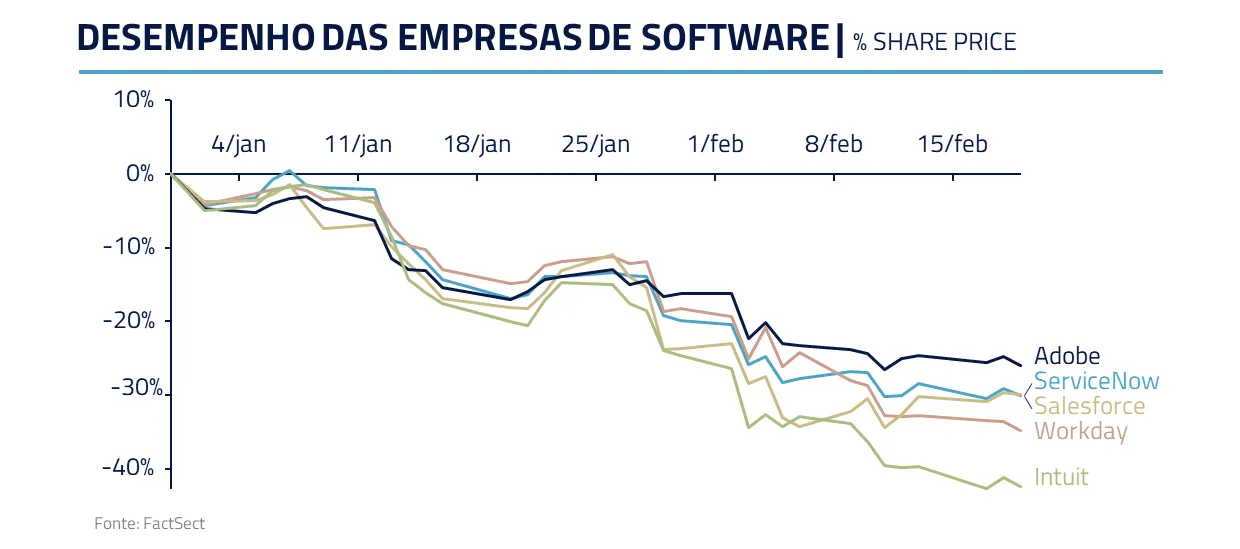 Durante meses, o mercado discutiu o investimento; neste mês, começou a sentir o fogo. À medida que agentes de I.A. ganham autonomia, com soluções como Claude Co-work e Openclaw assumindo tarefas complexas, a dinâmica competitiva muda de patamar.