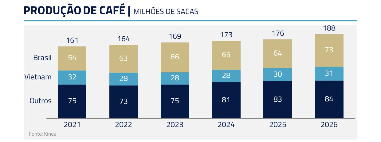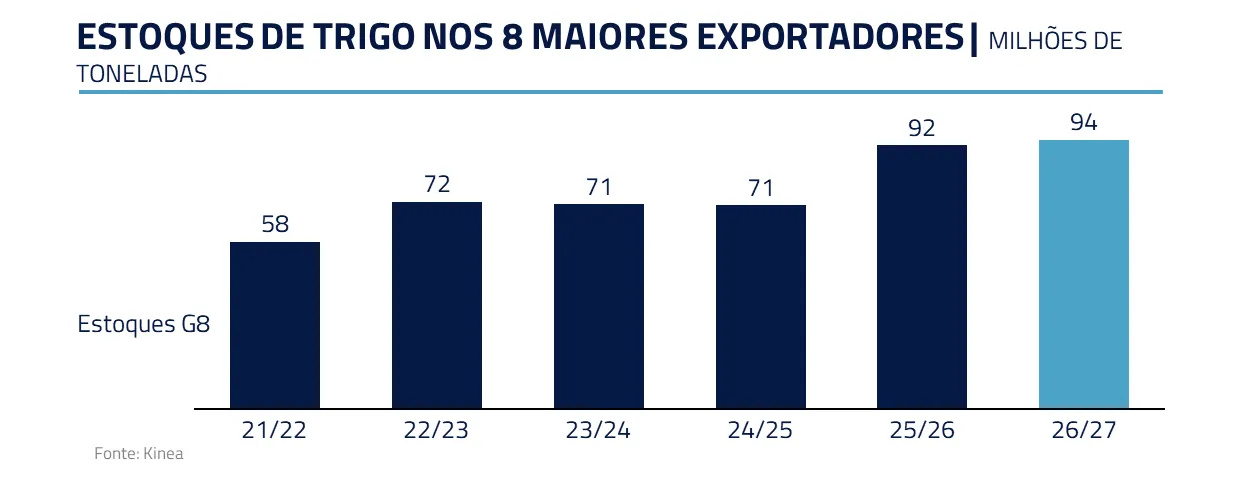 A ausência de eventos climáticos extremos como El Niño ou La Niña reforça esse pano de fundo benigno. Seguimos vendidos em trigo, milho, soja, algodão, açúcar e café, entendendo que o balanço risco-retorno ainda favorece preços mais acomodados.