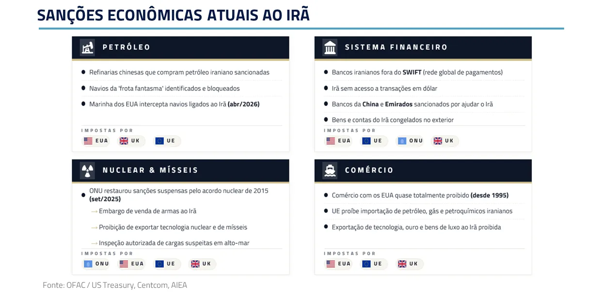 Esse medo não surge no vazio. O Irã carrega décadas de sanções, intervenções externas e disputas regionais. Para Teerã, seu programa  nuclear e sua rede de influência regional funcionam como instrumentos de dissuasão.