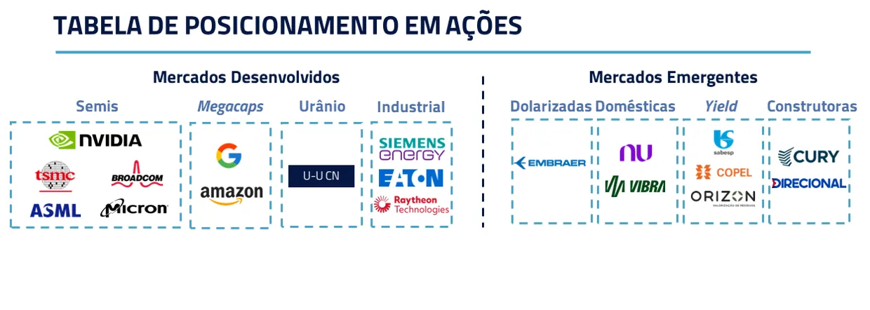 A combinação de juros reais ainda elevados, carrego atrativo e um cenário político ainda em aberto mantém uma assimetria favorável para ativos domésticos. Esse equilíbrio, ainda que frágil e sujeito a mudanças, ajuda a sustentar a leitura construtiva para ações brasileiras.