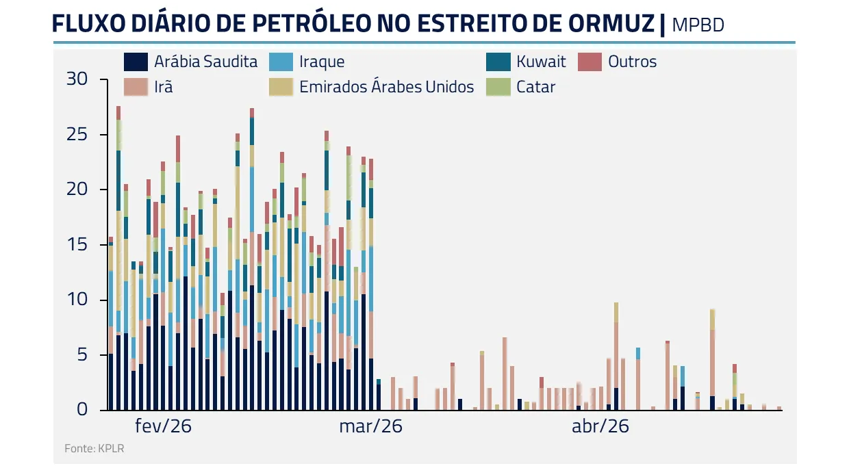 O petróleo segue sendo a variável central para o equilíbrio macro global. Ele responde por cerca de um terço da energia consumida no planeta e é insumo direto para transporte, indústria e cadeias logísticas. Por isso, a normalização do fluxo por Ormuz é fundamental não apenas para expectativas inflacionárias, mas para o funcionamento da própria economia global.