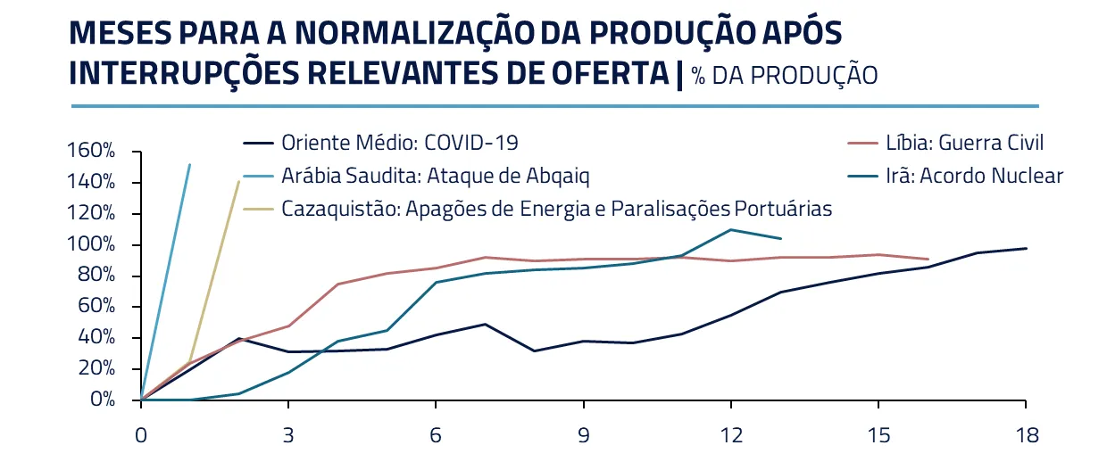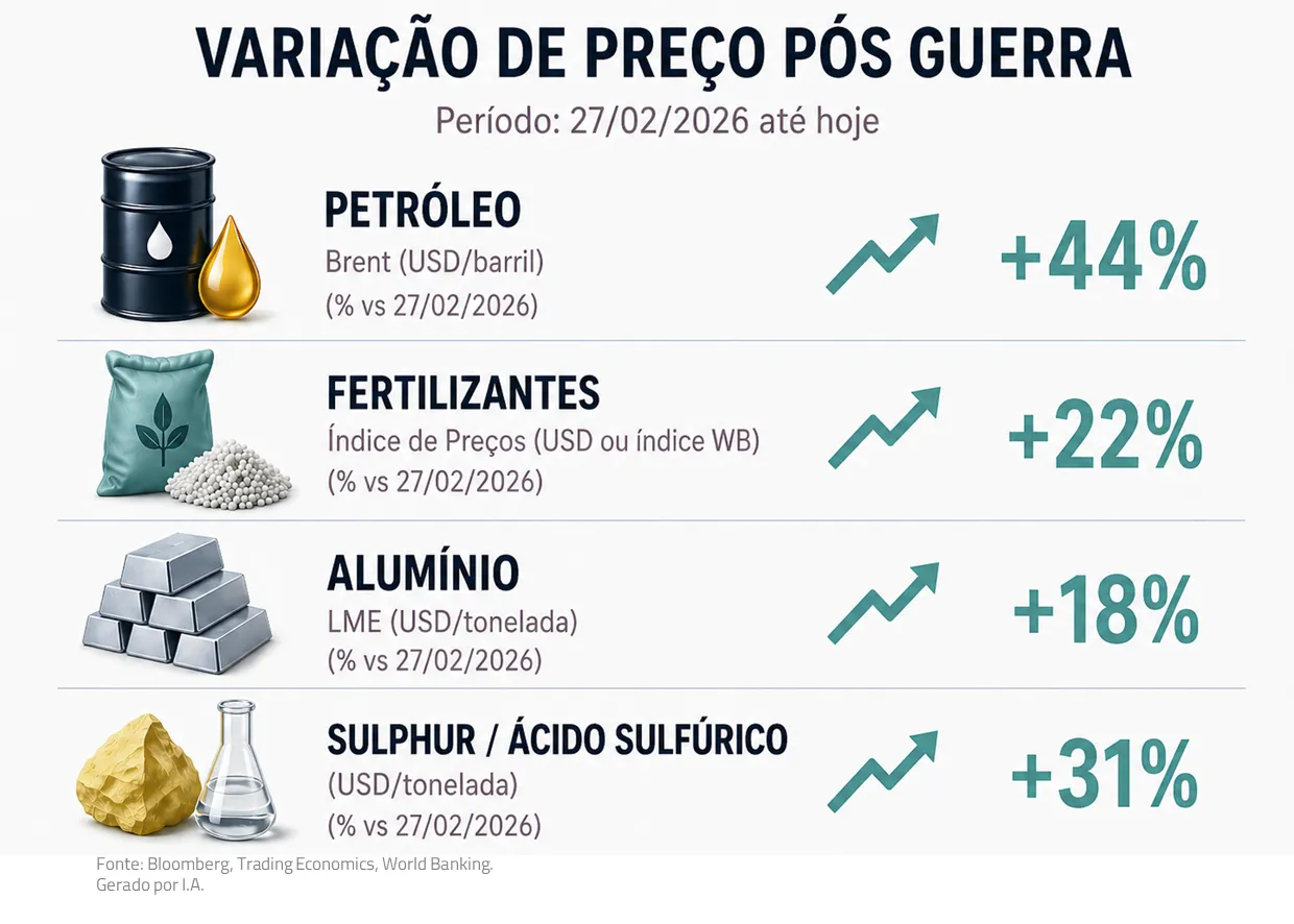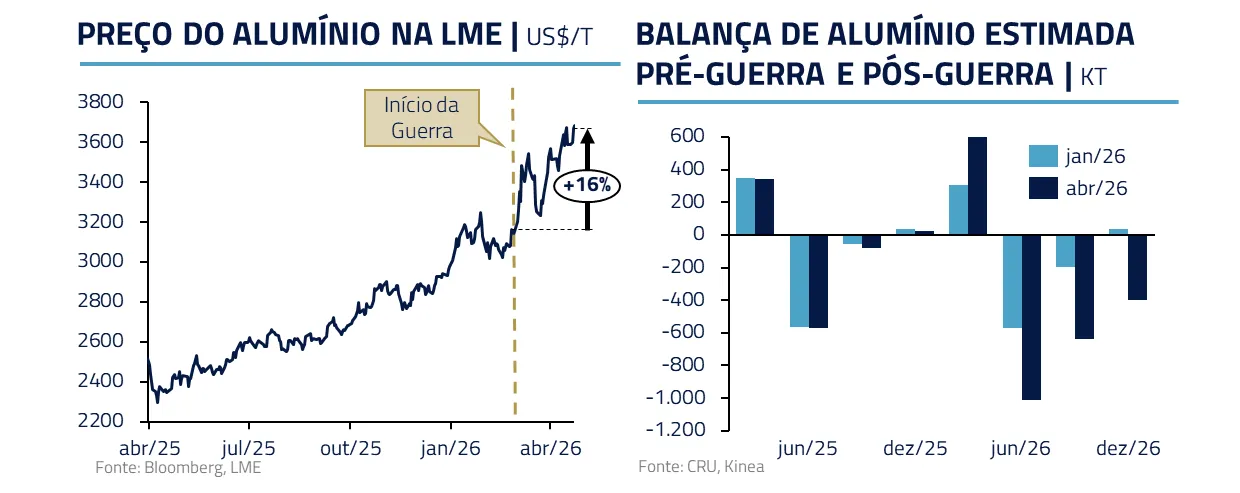 Além do choque imediato no petróleo, existem importantes efeitos de segunda ordem. Em alumínio, por exemplo, parte da capacidade produtiva relevante foi fisicamente afetada, e sua recuperação não será rápida.