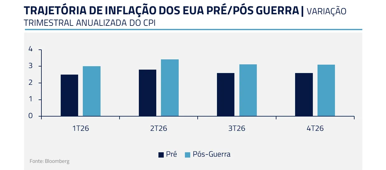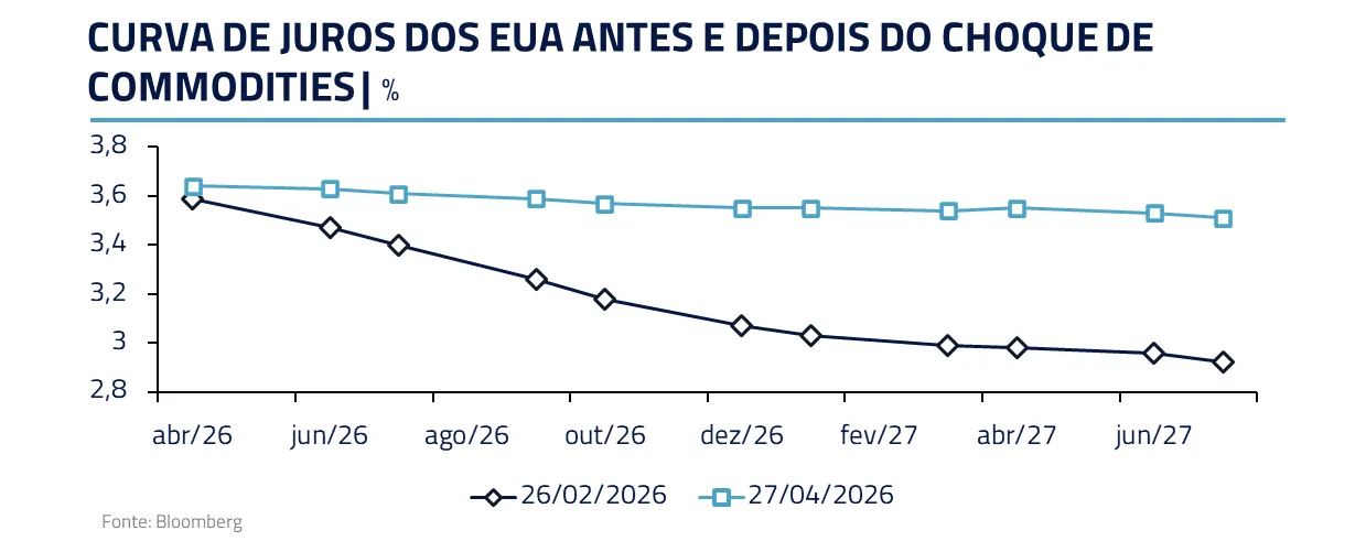 O choque recente em petróleo e insumos industriais interrompe, ao menos temporariamente, uma das principais avenidas de desinflação nos Estados Unidos. Depois de um longo período em que o mercado começava a se sentir mais confortável com a convergência da inflação no 2º semestre, uma vez aliviado o impacto das tarifas, a alta das commodities recoloca incerteza justamente sobre esse processo.