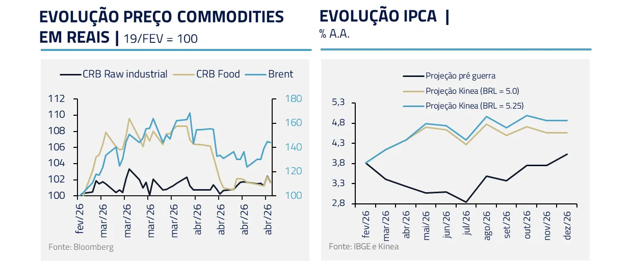 Como discutimos em nosso Kinea Insights inspirado em Duna, mesmo após uma eventual reabertura do estreito, o processo de normalização não é imediato. Há defasagens operacionais importantes: religamento de poços, recomposição de estoques, reorganização logística e reprecificação ao longo da cadeia. Esse intervalo pode durar semanas e é suficiente para amplificar efeitos sobre a atividade real.