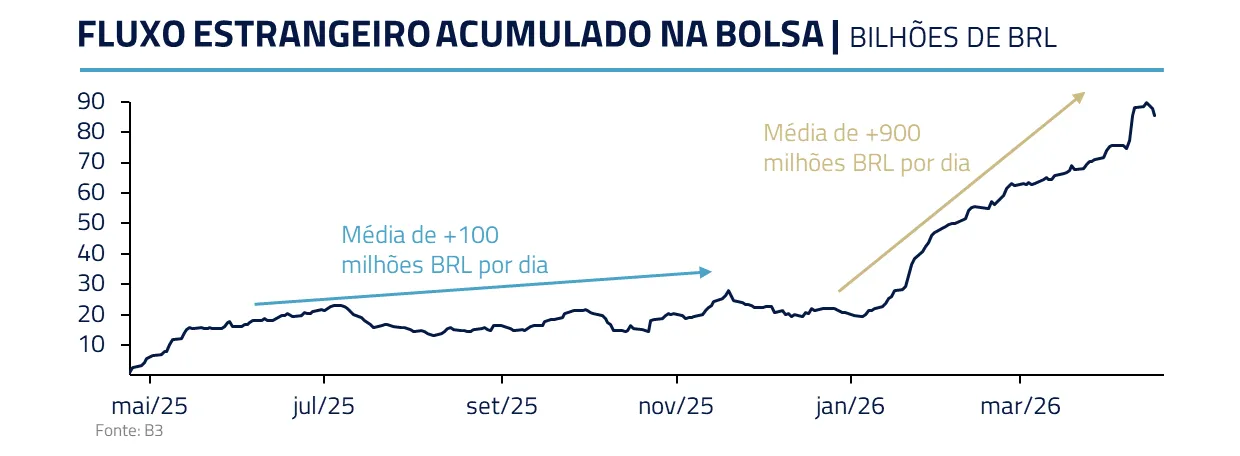 Antes mesmo da Guerra, o Brasil já havia voltado ao foco de atenção dos estrangeiros em um movimento de alocação global a ativos de risco e o choque de petróleo intensificou esse interesse.
