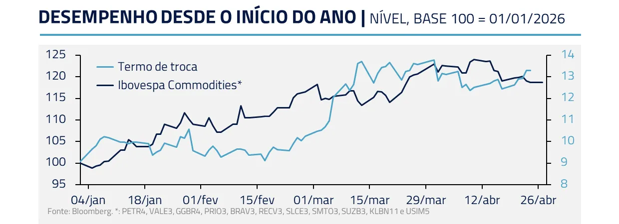 Como exportador líquido de petróleo e grande produtor de alimentos e minerais, o país captura parte importante da melhora dos termos de troca. Isso tem sustentado o fluxo externo, reforça a moeda e melhora o pano de fundo para a bolsa doméstica.