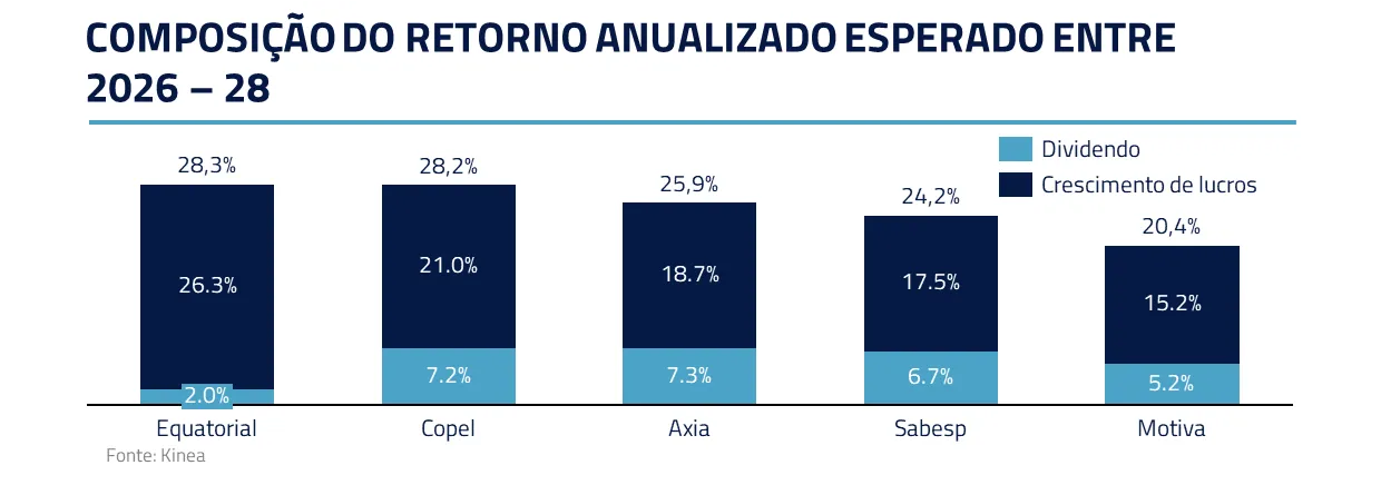 O ciclo de corte de juros iniciado pelo Copom, ainda que mais tímido do que o esperado pré-conflitos, também deve impulsionar os preços das ações locais, principalmente em ativos com maior sensibilidade à variação de juros, como utilidades públicas, que além disso, devem ter forte crescimento de lucro e dividendos e com receitas indexadas à inflação.