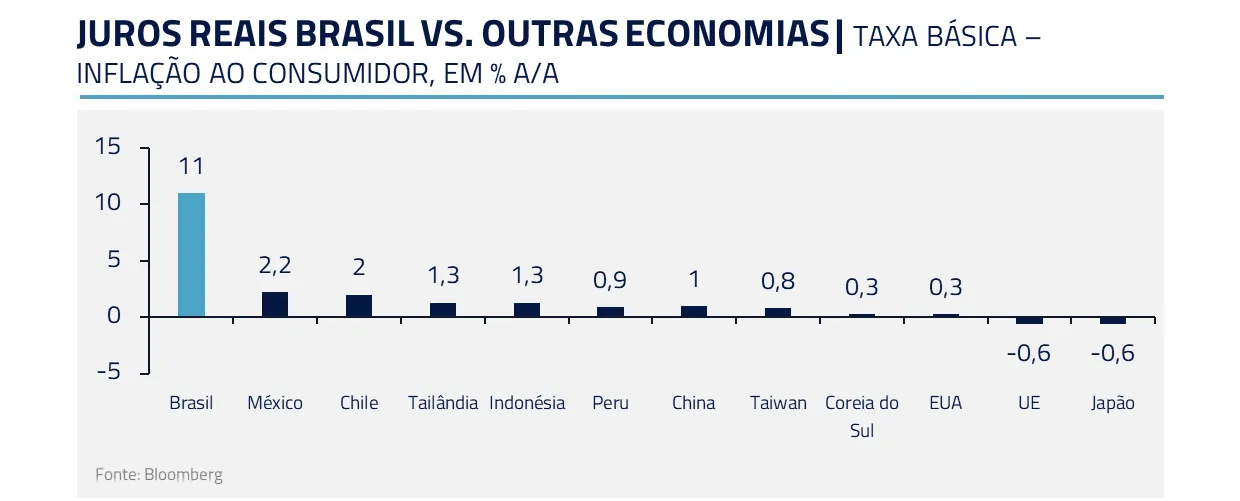 Adicionalmente, nosso diferencial de juros segue muito elevado, mesmo com o início de redução da Selic pelo Copom. Esse fator contribui ainda mais para o apetite global em relação à nossa moeda.