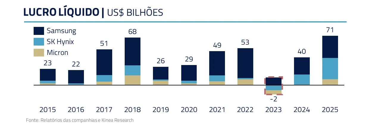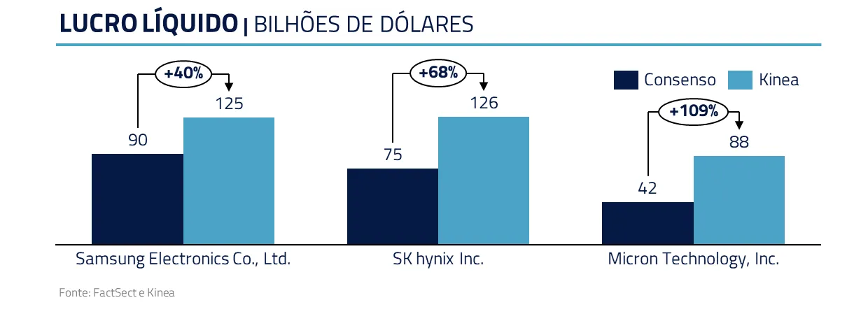 Com base nos preços de memória atuais, chegamos em estimativas de lucro muito acima do consenso para 2026. Além disso, por todos os motivos acima mencionados, sobretudo falta de oferta, esperamos que esses preços sigam sendo reajustados positivamente ao longo de 2026.