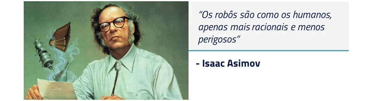 Ainda não alcançamos os dilemas de “Eu, Robô”, mas é inegável como os robôs já fazem parte da nossa sociedade. Passamos por quatro revoluções industriais: a mecanização, a eletrificação, a automação e a digitalização. Agora, entramos na era da convergência entre I.A. e robótica, onde acontece de fato a convergência na visão futurística de Asimov.