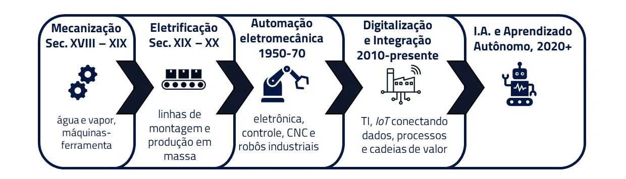 A história da automação é, em essência, a história da busca humana por eficiência. Após a primeira revolução industrial, quando as máquinas a vapor entraram nas fábricas, a força física deixou de ser o limite da produção. A partir de então, o crescimento não viria mais do número de trabalhadores, mas da capacidade de multiplicar seu esforço com tecnologia.