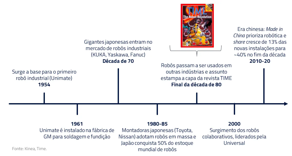 Nos ramos pioneiros em automação (automotivo, eletrônico e metalúrgico), a robotização já atingiu níveis próximos ao limite técnico, e o crescimento desse mercado tende a ser moderado daqui para frente. O mercado já é consolidado, dominado por gigantes como ABB, Fanuc, Yaskawa e Kuka, que respondem pela maior parte dos mais de 4,5 milhões de robôs industriais instalados no mundo.