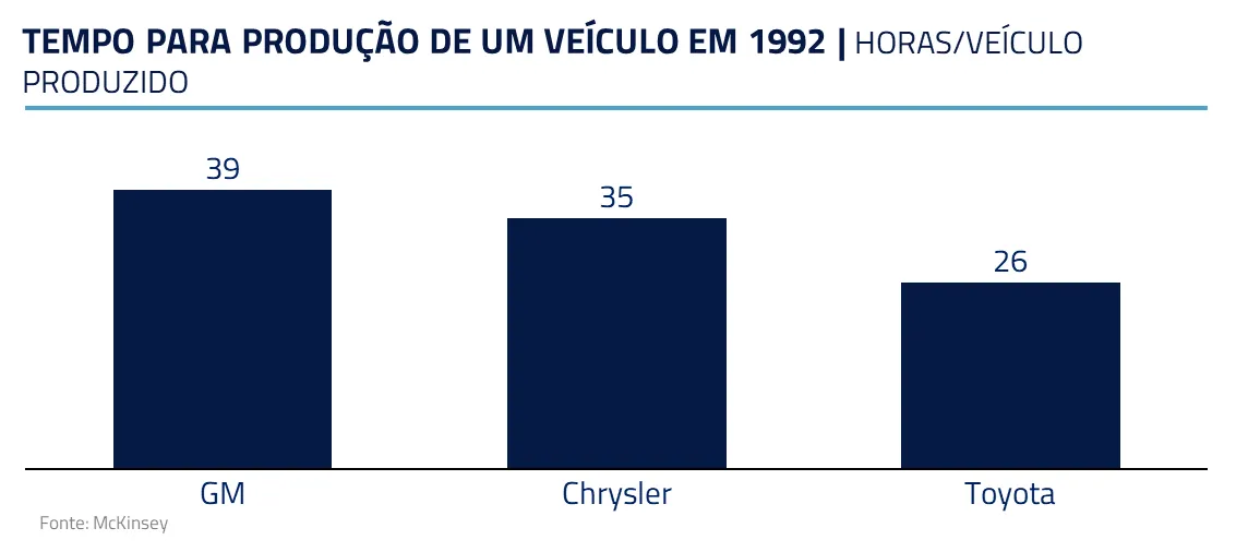 Nesse período, o Japão assumiu a liderança ao instalar robôs em massa nas indústrias automotiva e eletrônica, elevando a produtividade e chegando a mais de 70% do estoque global de robôs em operação. Em pouco tempo as montadoras japonesas superavam as americanas em custo e qualidade, e em 1992, a Toyota era quase duas vezes mais produtiva que a GM.