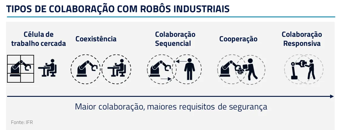 Diferentemente dos robôs industriais tradicionais, os robôs móveis e colaborativos se destacam pela flexibilidade e interação com humanos, permitindo que atuem em áreas antes inacessíveis à automação. Eles executam funções diversas – de tarefas mais flexíveis dentro da fábrica, até operações complexas em centros de distribuição, cidades, hospitais e residências.