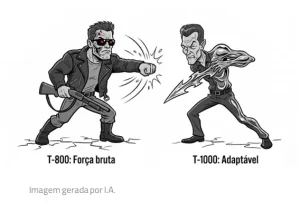 O T-1000 não é apenas força bruta, mas um sistema fluido que se adapta, planeja e contorna obstáculos. Da mesma forma, os agentes representam uma I.A. que não apenas gera textos, mas executa ações, utiliza ferramentas externas e opera de forma autônoma em múltiplos sistemas simultaneamente.