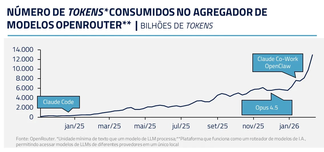 A adoção de agentes de I.A. autônomos deixou definitivamente de ser experimento para se tornar o maior vetor de reestruturação corporativa desde a internet. À medida que as empresas veem mais retornos financeiros sobre o investimento em I.A., o valor percebido da utilização dos tokens será cada vez maior, gerando um ciclo virtuoso de aplicações e, consequentemente, demanda por infraestrutura.