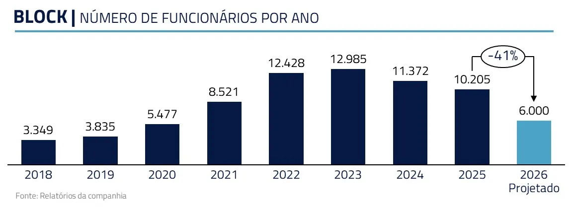 Na área de desenvolvimento de software, o caso da Block é emblemático. A empresa anunciou planos de reduzir seu quadro de aproximadamente 10 mil para menos de 6 mil funcionários, justificando que agentes de I.A. permitem uma operação muito mais enxuta e mais eficiente.