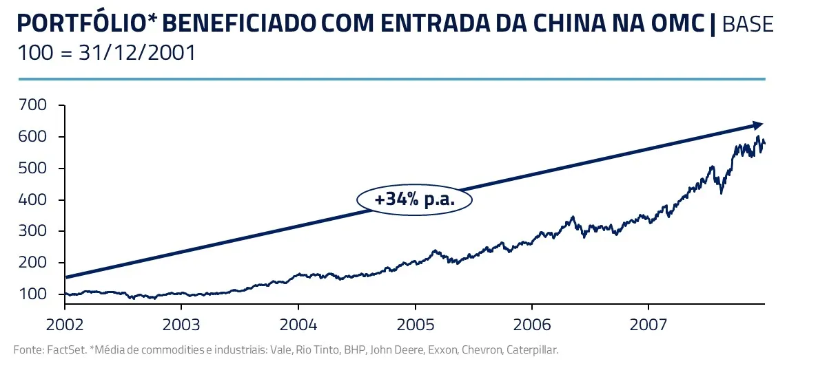 A analogia histórica mais clara é a entrada da China na Organização Mundial do Comércio, em 2001. Quando a China se tornou o grande polo manufatureiro global, muitos tentaram competir com sua produção. Os vencedores, porém, foram aqueles que venderam para a China o que ela precisava para crescer: energia, minério, máquinas e infraestrutura.