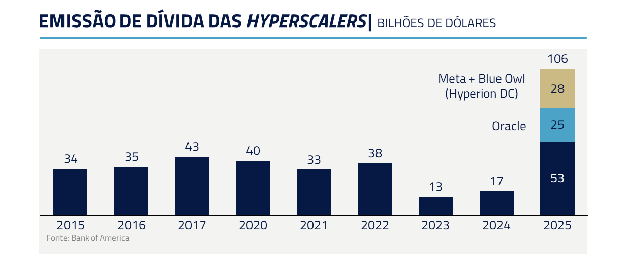 Nos últimos meses, ficou evidente que a quantidade de investimentos e endividamento direcionada à I.A. atingiu níveis sem precedentes. Empresas cujo negócio principal nem era I.A. passaram a levantar dívidas bilionárias para financiar investimentos nessa área.