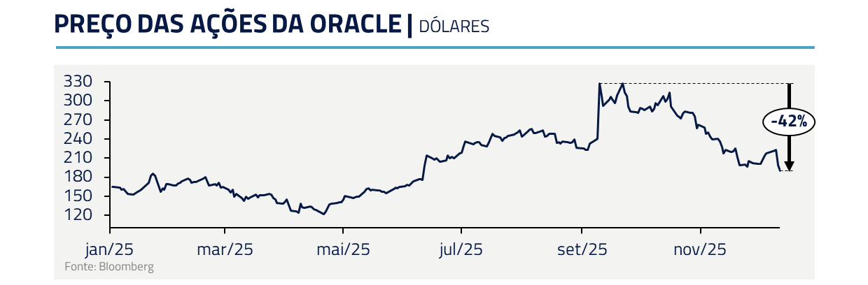 O lado oculto aqui é que, apesar do constante desenvolvimento da tecnologia, os vencedores do futuro não necessariamente serão os atuais. A Oracle, por exemplo, foi alçada a “queridinha da I.A.” em setembro após anunciar acordo de fornecimento de computação em nuvem de até US$ 300 bilhões com a OpenAI. Mas, desde então, os ganhos se dissiparam com as desconfianças do mercado acerca da capacidade da OpenAI de cumprir esse contrato.