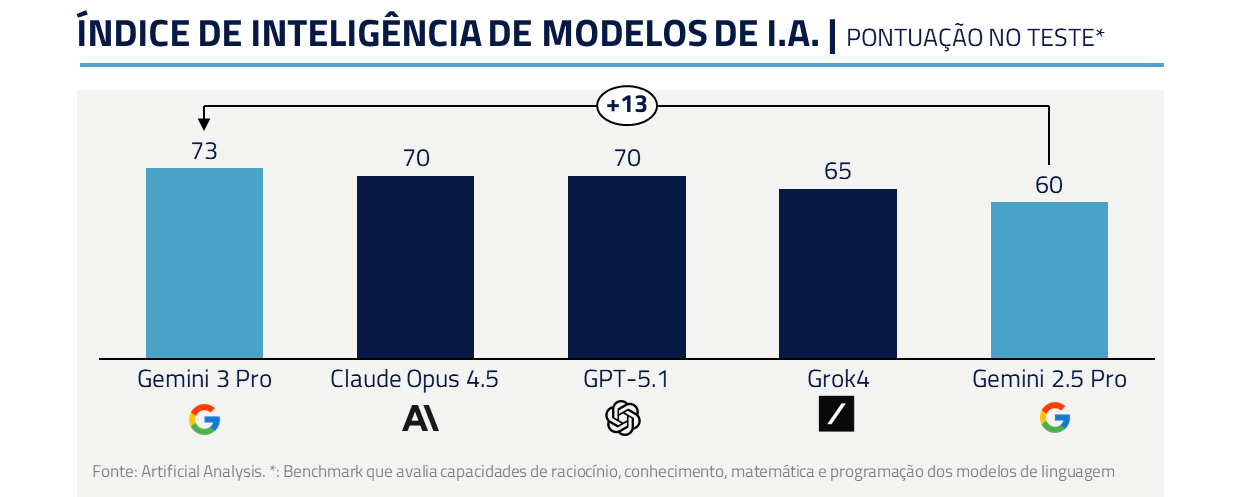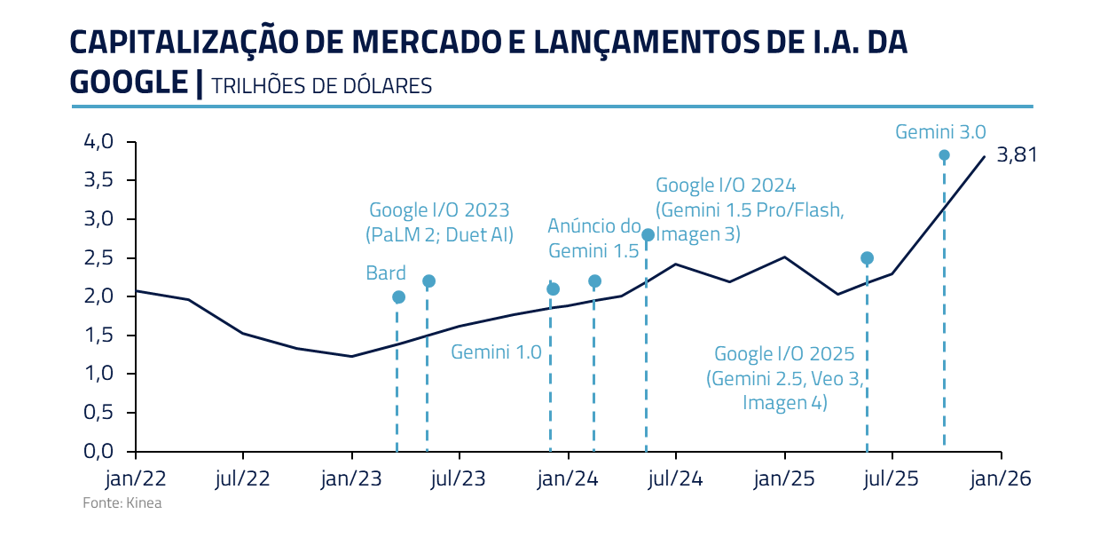 Essa percepção cresceu, especialmente, após eventos como a apresentação do Gemini 3, quando muitos viram o potencial de superar permanentemente os modelos da OpenAI juntamente com um ecossistema completo para monetização.