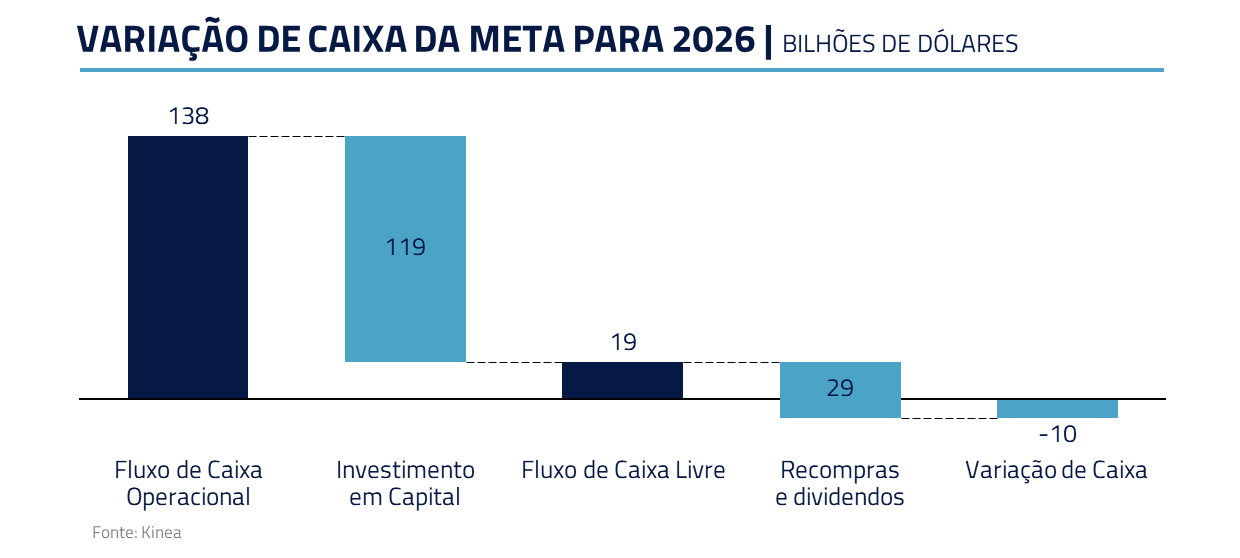 Outro caso é a Meta, que, embora altamente lucrativa, definiu que precisava investir pesadamente em I.A., e, com isso, caminha para utilização de toda sua geração de caixa.