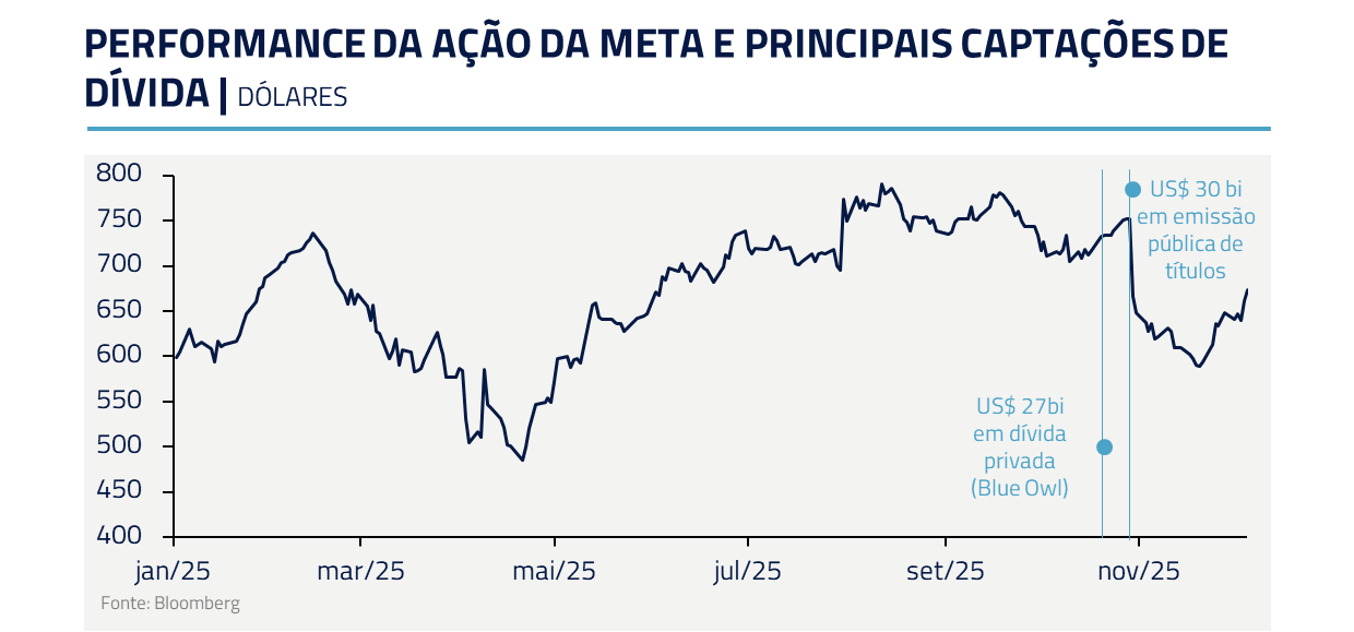 O mercado não recebeu bem os planos de investimento da Meta. As ações da companhia despencaram 11% após a indicação de que os investimentos vão seguir em patamares elevados em 2026. Ficou no ar o sentimento de que a Meta está gastando excessivamente, um fantasma que também ocorreu com o metaverso.