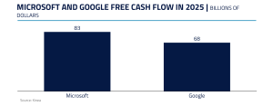 In contrast to these cases, Microsoft and Google are funding AI expansion with internally generated cash. Moreover, unlike Oracle and CoreWeave—both infrastructure providers—they benefit from unique distribution channels, which accelerate monetization.