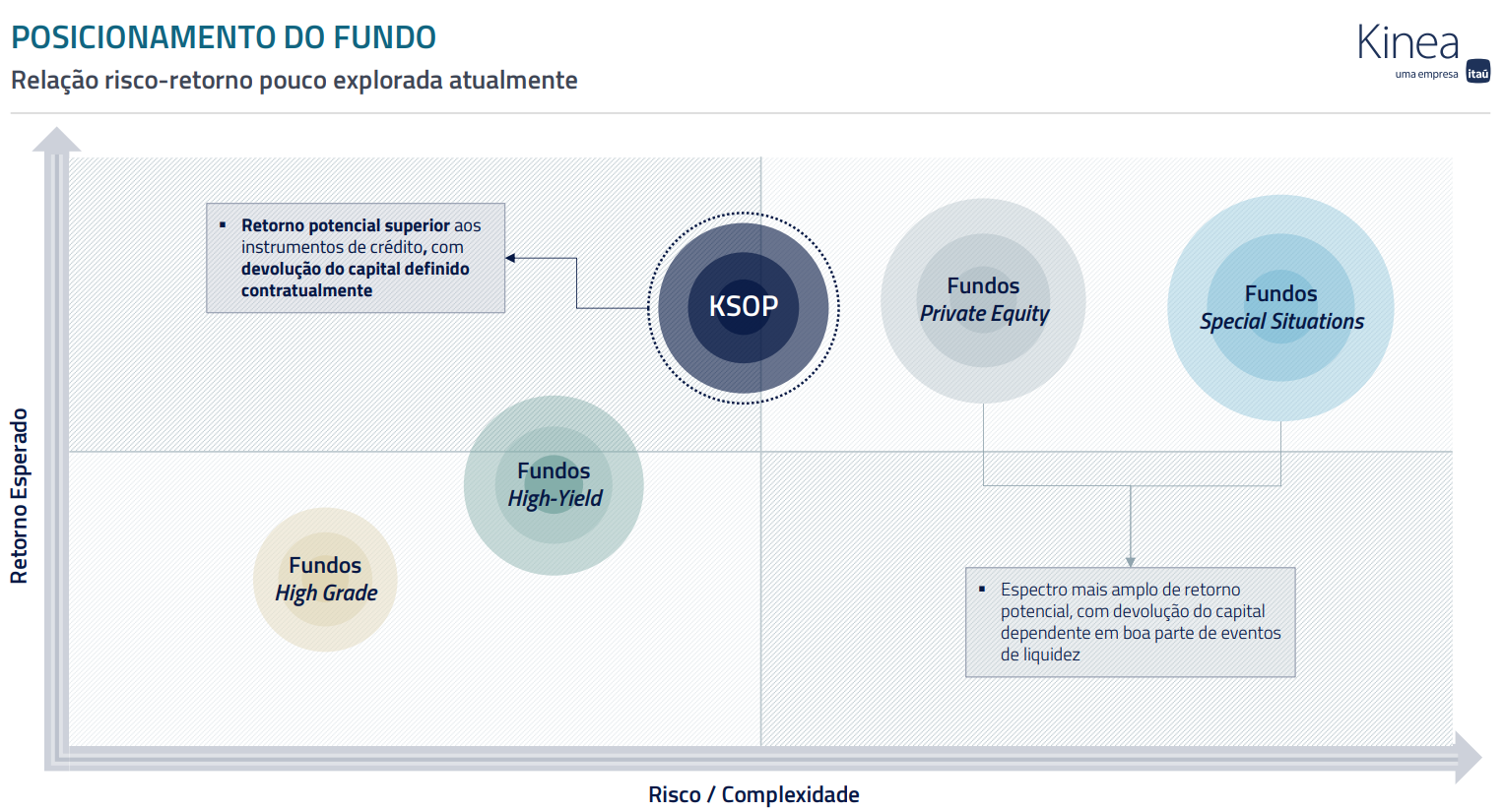 Veículo destinado a investimentos originados e geridos pelas áreas de Private Equity e Capital Solutions da Kinea que combinam potencial de geração de equity value e estruturas com mecanismos de proteção e previsibilidade de fluxo de pagamento, típicos de instrumentos de renda fixa, permitindo captura de potenciais retornos acima do padrão de mercado com mitigação de risco em cenários adversos.